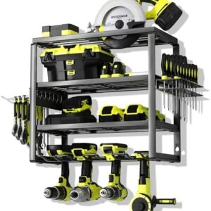• 4 Layer Power Tool Organizer Wall Mount, Battery Tools Holder with Charging Station Shelf, Cordless Drill Hanger Storage Rack for Garage Organization, Workshop, Pegboard - 16 Inch 4 Slots $59.99