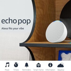 Amazon Echo Pop | Alexa fits in anywhere: bedroom, living room, bathroom, office, and small spaces | Glacier White