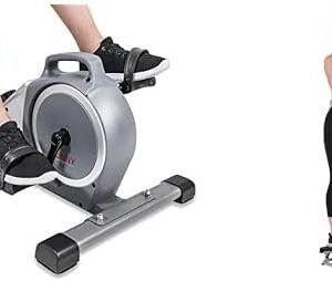 Sunny Health & Fitness Under Desk Mini Exercise Cycle Bike + Sunny Health & Fitness Magnetic Standing Elliptical with Handlebars – SF-E3988, Grey