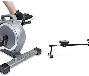 Sunny Health & Fitness Under Desk Mini Exercise Cycle Bike + Sunny Health & Fitness Hydro + Dual Resistance Smart Magnetic Water Rowing Machine