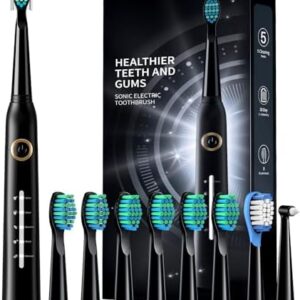 • Sonic Electric Toothbrushes for Adults, 8 Brush Heads Electric Toothbrush with 40000 VPM Deep Clean 5 Modes, Rechargeable Toothbrushes Fast Charge 4 Hours Last 30 Days $21.99 $49.95
