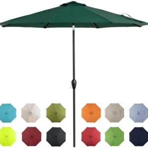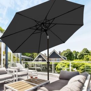 wikiwiki 9 FT Patio Umbrellas Outdoor Table Market Umbrella with Push Button Tilt/Crank,8 Sturdy Ribs, Fade Resistant Waterproof POLYESTER DTY Canopy for Garden, Lawn, Deck, Backyard & Pool, Black