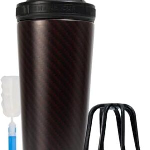 Red Carbon Fiber Wrap 24Oz Stainless Steel Protein Shaker Bottle, Gym Water Bottle & Mixer Bottle – Internal Measure, Rubber Bottom, and Brush – Leak Proof & BPA Free Protein Shake Bottle