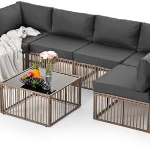 • Pamapic 7 Pieces Outdoor Sectional Set, All-Weather PE Rattan Patio Conversation Set, Wicker Adjustable Patio Furniture Set with Washable Cushions Covers and Coffee Table, Brown Rattan, Gray Cushion $1,589.99