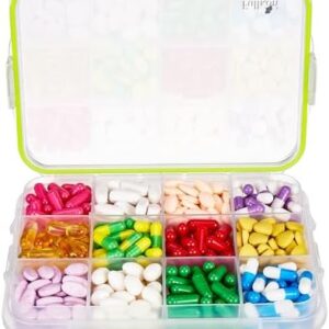 Fullicon Supplement Organizer with 12 Extra Large Compartment, Daily Travel Moisture Proof Pill Case with Removable Dividers, Large Pill Box for Vitamin with 3 Secured Buckles (Green)