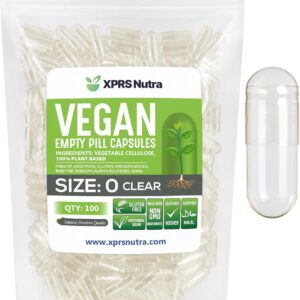 XPRS Nutra Size 0 Empty Capsules – 100 Clear Count Empty Vegan Capsules – Vegetarian Pill – DIY Vegetable Capsule Filling -Veggie Pills for Do-It-Yourself Supplements