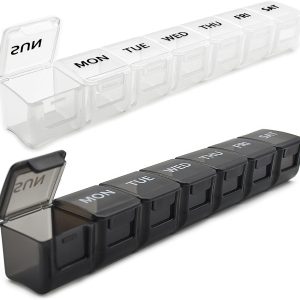 2 Pack Weekly Pill Organizer, Large 7 Day Pill Case, Daily Vitamin Case Medicine Box, AM/PM Pill Containers for Medicine Supplements Fish Oil(White & Black)
