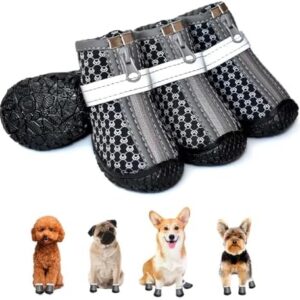 • Dog Shoes for Small Dogs, Anti-Slip Dog Boots with Reflective Strips, Puppy Paw Protectors for Walking Winter Snow Summer Hot Pavement, Waterproof in Rainy Weather 4PCS/Set (Blackpawboot) $22.99