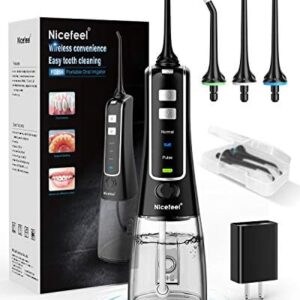 • Nicefeel Cordless and Rechargeable Water Flosser - 300ML Water Tank Oral Irrigator, 4 Jet Tips, 3 Pressure Modes - IPX7 Waterproof and Travel Friendly for Dental Care Black $35.69
