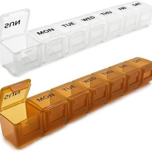 • 2 Pack Weekly Pill Organizer, Large 7 Day Pill Case, Daily Vitamin Case Medicine Box, AM/PM Pill Containers for Medicine Supplements Fish Oil (White & Khaki) $9.69