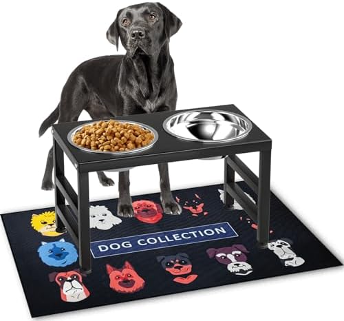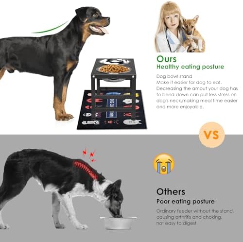 【KEEP YOUR FLOOR CLEAN】- The ADENGL raised dog bowl comes with a splash-proof mat that can be placed underneath the bowl rack, spilled food and water can be well collected by the mat to keep the feeding area dry and tidy. Perfect for messy eaters.
