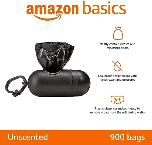 Includes 900 unscented plastic bags (15 bags per roll; 60 rolls), a dispenser, and a matching leash clip