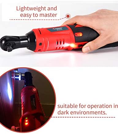 The ratchet wrench comes with a set of 2 long lasting & rechargeable 12V Lithium Ion Batteries and 60-minute Fast Charger.