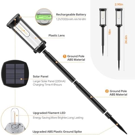 LONG-LASTING SOLAR LIGHTS: Unlike typical solar walkway lights, BITPOTT solar garden landscape lights are equipped with a powerful rechargeable NI-MH battery. This enables them to provide illumination for up to 12-14 hours after a full charge and automatically turn on at night. This ensures you have bright and reliable lighting throughout the night.