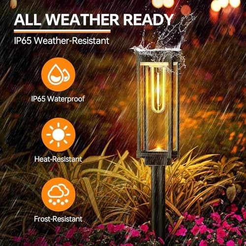 UNIQUE & RETRO DESIGN: The bright solar pathway lights outdoor feature warm white tungsten filament bulbs placed within high transparency, thicker lampshades, making BITPOTT solar yard lights brighter and more durable than others. These waterproof solar powered landscape lights can project unique light and shadow, creating a romantic and warm atmosphere for your home.