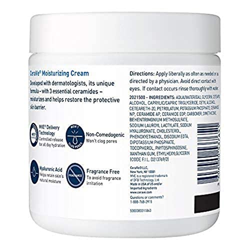 [ MOISTURIZER FOR DRY SKIN ] A deficiency of ceramides in skin can often be associated with dry skin, which can feel itchy and look flaky. CeraVe Moisturizing Cream is formulated with three essential ceramides & hyaluronic acid.