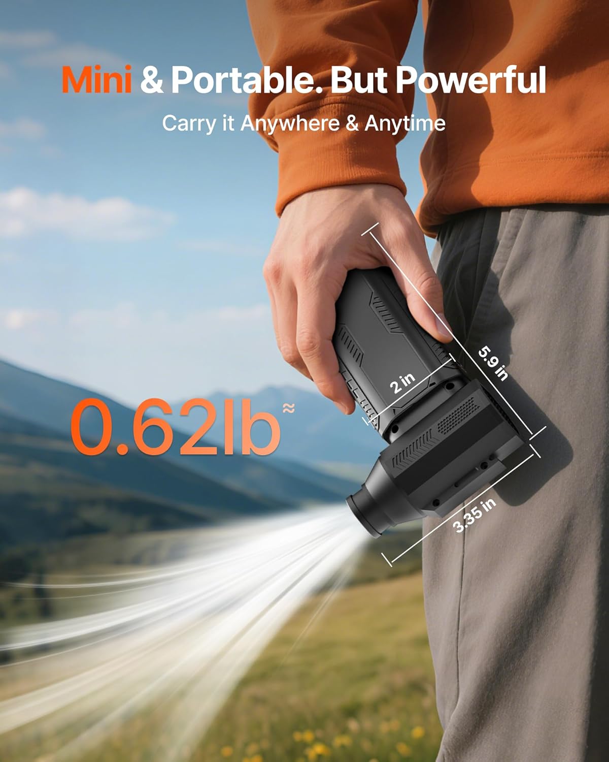[Lightweight & Portable] Weighing just 0.62 lbs, this mini air blower fits effortlessly in your hand. With a lanyard and storage bag, it’s easily portable – turning any cleaning task into a compact power solution.