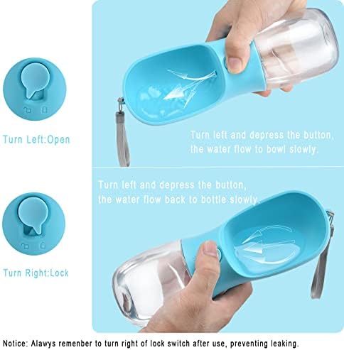 【Easy to Use & No waste water】 Turn left and depress the lock button, the water in the bottle can flow to bowl or flow back from bowl to bottle slowly. There is no waste of water. All operations can be finished by one hand, very easy to use. ALWAYS REMEMBER to turn right before putting the bottle into your bag, prevent leaking.
