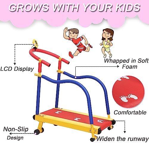 [Upgrade Running Belt]The kids fitness exercise treadmill with widened anti-slip running belt, provides your child with a spacious running area, making your running child quieter, safer, and more comfortable.