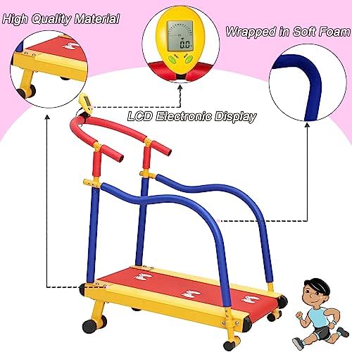 [LCD Electronic Display]The portable kids fitness treadmill with the multi-functional LCD display, which can easily record exercise data, easy to install and operate. (the display needs 2 AA battery, it is not included).