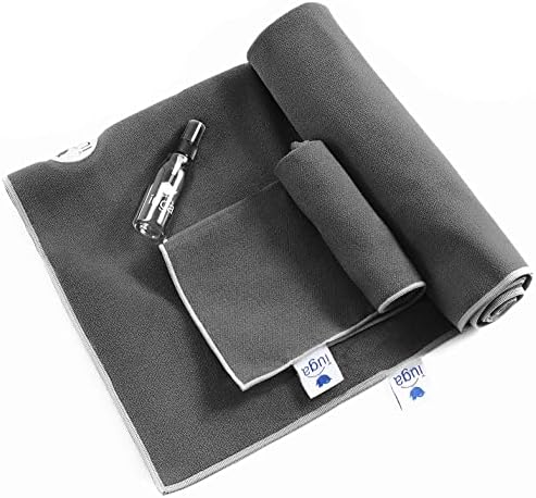 IUGA Yoga Towel for Hot Yoga Non Slip Extra Thick Yoga Mat Towel + Hand Towel 2in1 Set with Corner Pockets Super Absorbent and Quick Dry Hot Yoga Towel