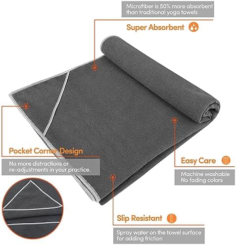 Corner Pockets Design: No more distractions or re-adjustments, simply hook the corner pockets underneath your mat. So the yoga towel is taut and stays firmly in place, which allows you to fully focus your mind and body on yoga practices.