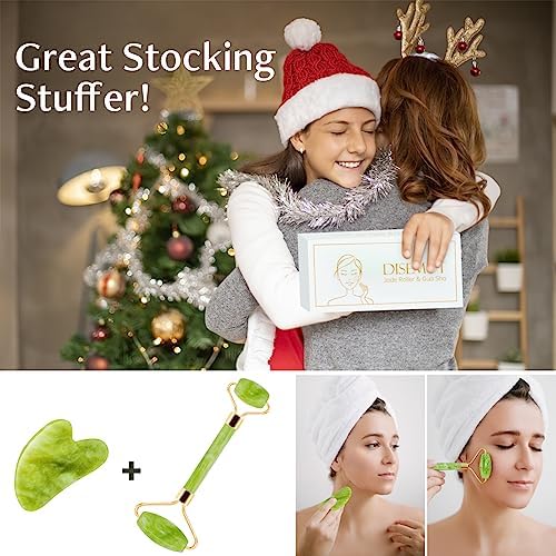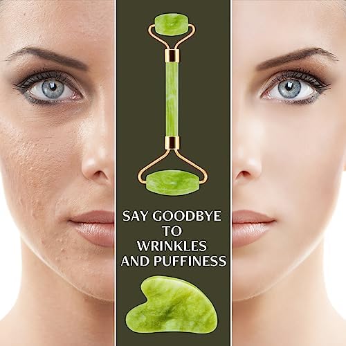 Jade Roller & Gua Sha Facial Tools, Natural Anti-Aging Jade Beauty Skin-Care Tool Face Roller to Rejuvenate Facial Skin Cooling, Slimming & Firming, Great as Stocking Stuffers