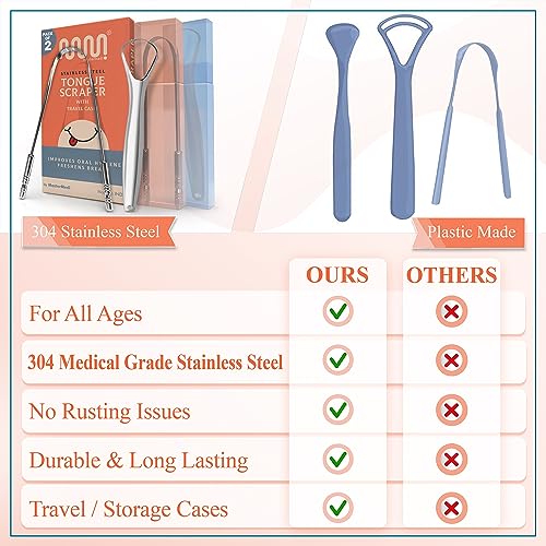 TRAVEL FRIENDLY: The 2-piece kit has individual cases for each tongue cleaner (limpiador de lengua), making it easy to carry around. You can just keep one at home and another at work. It is a comfortable size for adults. The high-quality stainless steel tongue scraper can be cleaned without any hassle and won’t break, unlike other alternatives.