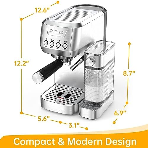 【Choose The Coffee You Want】The MAttinata espresso machine with milk frother allows you to enjoy barista-quality Espresso, Capuccino, Latte at home. The compact cappuccino maker machine features a stylish stainless steel design and is ideal for any size kitchen.