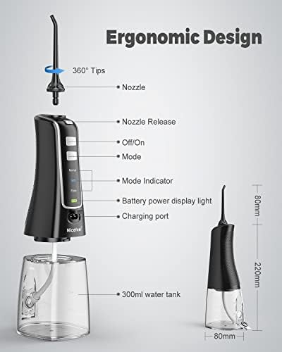 Customizable and Convenient Cleaning Modes: The Nicefeel cordless water flosser offers three cleaning modes – Normal, Soft, and Pulse – with a low-noise design to meet various oral cleaning needs. The device also features a memory function that automatically remembers the last mode used, even when the flosser is turned off, for convenient and consistent use.