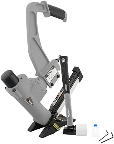 NuMax SFL618 Pneumatic 3-in-1 15.5-Gauge and 16-Gauge 2″ Flooring Nailer / Stapler with Flooring Mallet and Interchangeable Base Plates, Grey