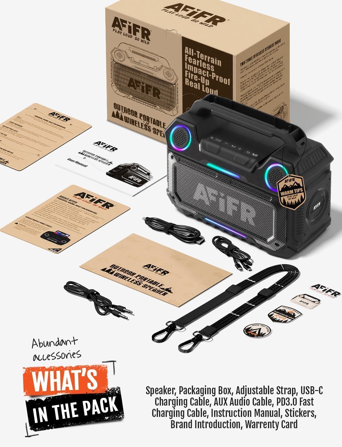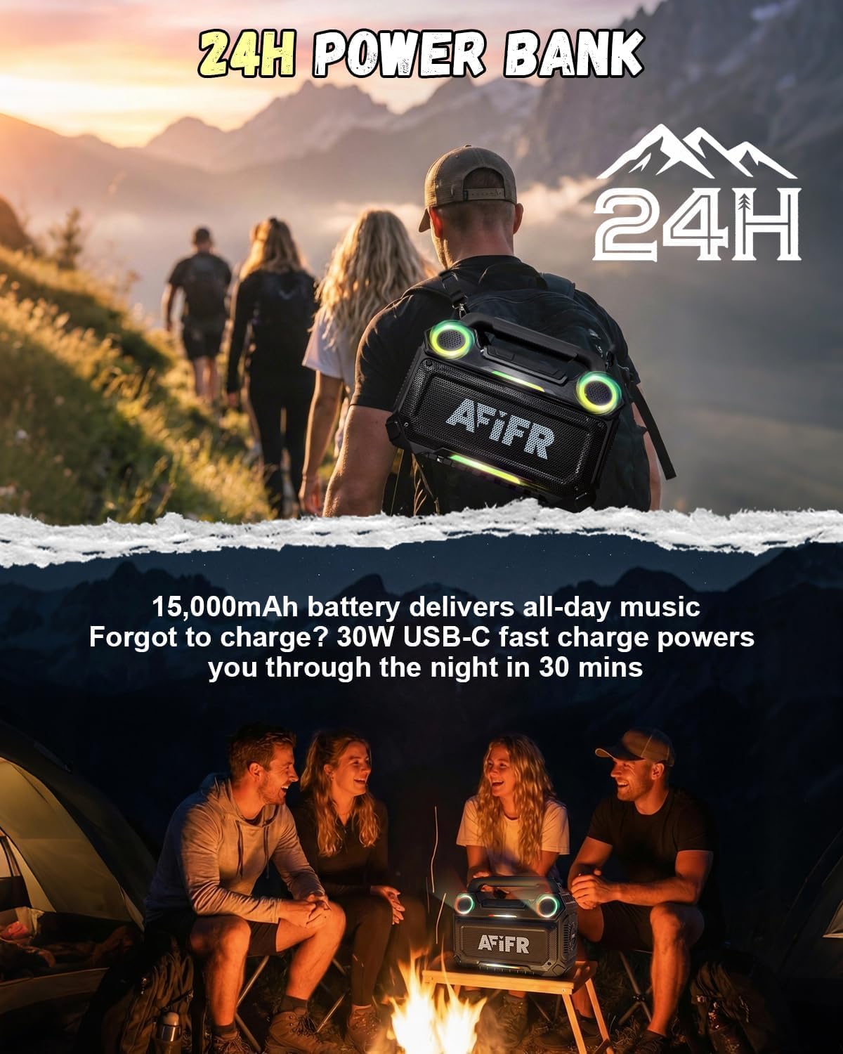 24H PLAYTIME & FAST CHARGING: With a powerful 15,000mAh rechargeable battery, this large Bluetooth speaker offers up to 24 hours of continuous playtime. 30W PD 3.0 USB-C fast charging allows it to recharge quickly, keeping you ready for long trips, beach days, or non-stop adventures.