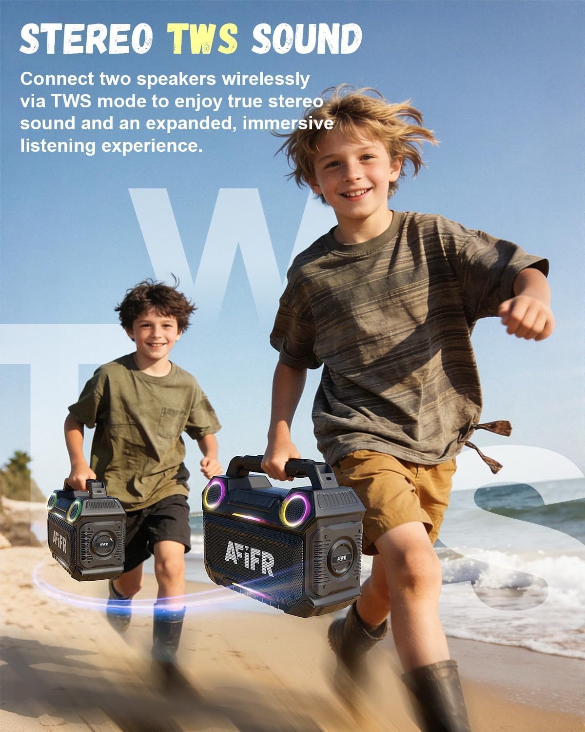 SEAMLESS STEREO & BLUETOOTH 5.3: Enjoy fast, stable wireless connectivity with advanced Bluetooth 5.3 technology. Pair two portable Bluetooth speakers together for enhanced stereo sound—ideal for a beach party, outdoor barbecues, or any adventure that demands powerful, immersive audio.