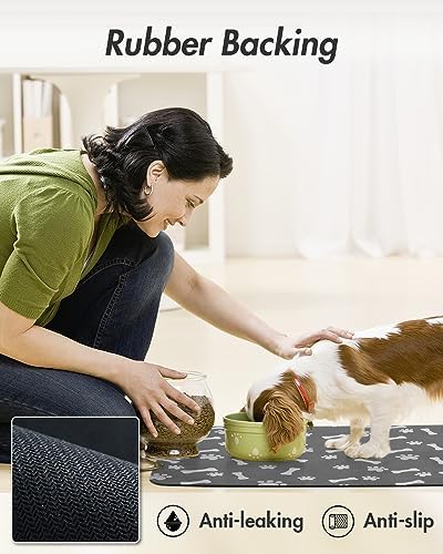 Pet Feeding Mat-Absorbent Dog Food Mat-Dog Mat for Food and Water-No Stains Quick Dry Dog Water Dispenser Mat-Pet Supplies-Dog Placemat Dog Water Bowl for Messy Drinkers 12″X19″ Dark Grey