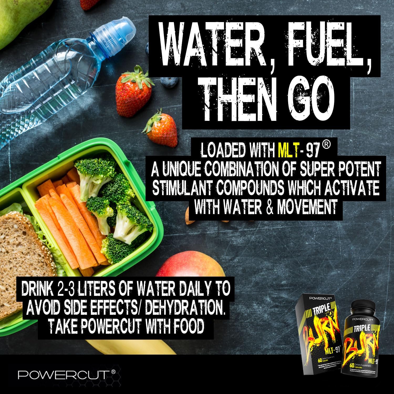 POWERCUT POWERHOUSE – Powercut with NEW MLT-97 technology is designed to be used in conjunction with a healthy diet and active lifestyle. Drink 2-3 liters of water daily to activate the ingredients and avoid dehydration/side effects. Take it with food.
