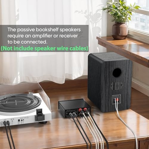 【Thoughtful Design】The passive speakers are designed for the budget-conscious music lover who wants a pair of simple, affordable, yet great sounding speakers. These speakers can be used on desks, bookshelves or walls, or on speaker stands.The independent hooks on the back panel to facilitate you to hang the speakers on the wall. 𝐈𝐌𝐏𝐎𝐑𝐓𝐀𝐍𝐓 𝐍𝐎𝐓𝐄:𝐓𝐡𝐞 𝐛𝐨𝐨𝐤𝐬𝐡𝐞𝐥𝐟 𝐬𝐩𝐞𝐚𝐤𝐞𝐫𝐬 𝐚𝐫𝐞 𝐩𝐚𝐬𝐬𝐢𝐯𝐞 𝐝𝐞𝐬𝐢𝐠𝐧 𝐚𝐧𝐝 𝐫𝐞𝐪𝐮𝐢𝐫𝐞 𝐚 𝐬𝐞𝐩𝐚𝐫𝐚𝐭𝐞 𝐚𝐦𝐩𝐥𝐢𝐟𝐢𝐞𝐫 𝐨𝐫 𝐫𝐞𝐜𝐞𝐢𝐯𝐞𝐫 𝐢𝐧 𝐨𝐫𝐝𝐞𝐫 𝐭𝐨 𝐩𝐥𝐚𝐲 𝐚𝐮𝐝𝐢𝐨 𝐟𝐫𝐨𝐦 𝐚 𝐓𝐕, 𝐜𝐨𝐦𝐩𝐮𝐭𝐞𝐫, 𝐨𝐫 𝐫𝐞𝐜𝐨𝐫𝐝 𝐩𝐥𝐚𝐲𝐞𝐫.