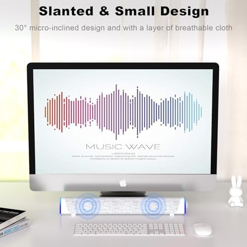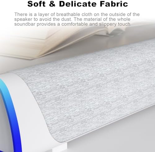 [Slanted Design]: The 30-degree micro-inclined design allows the sound to be better conveyed. There is a layer of breathable cloth on the outside of the speaker to avoid the dust. The material of the whole soundbar provides a comfortable and slippery touch