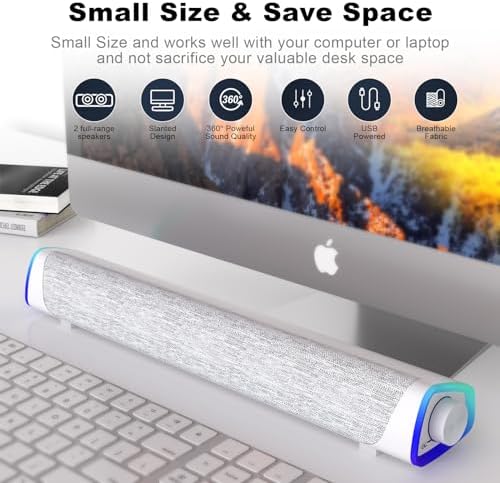 [Wide Compatibility]: The sound bar supports most of the devices with standard 3.5mm jack. Compatible with PC, Computer, Laptop, Tablet, Smartphones. (Note: Need USB Powered)
