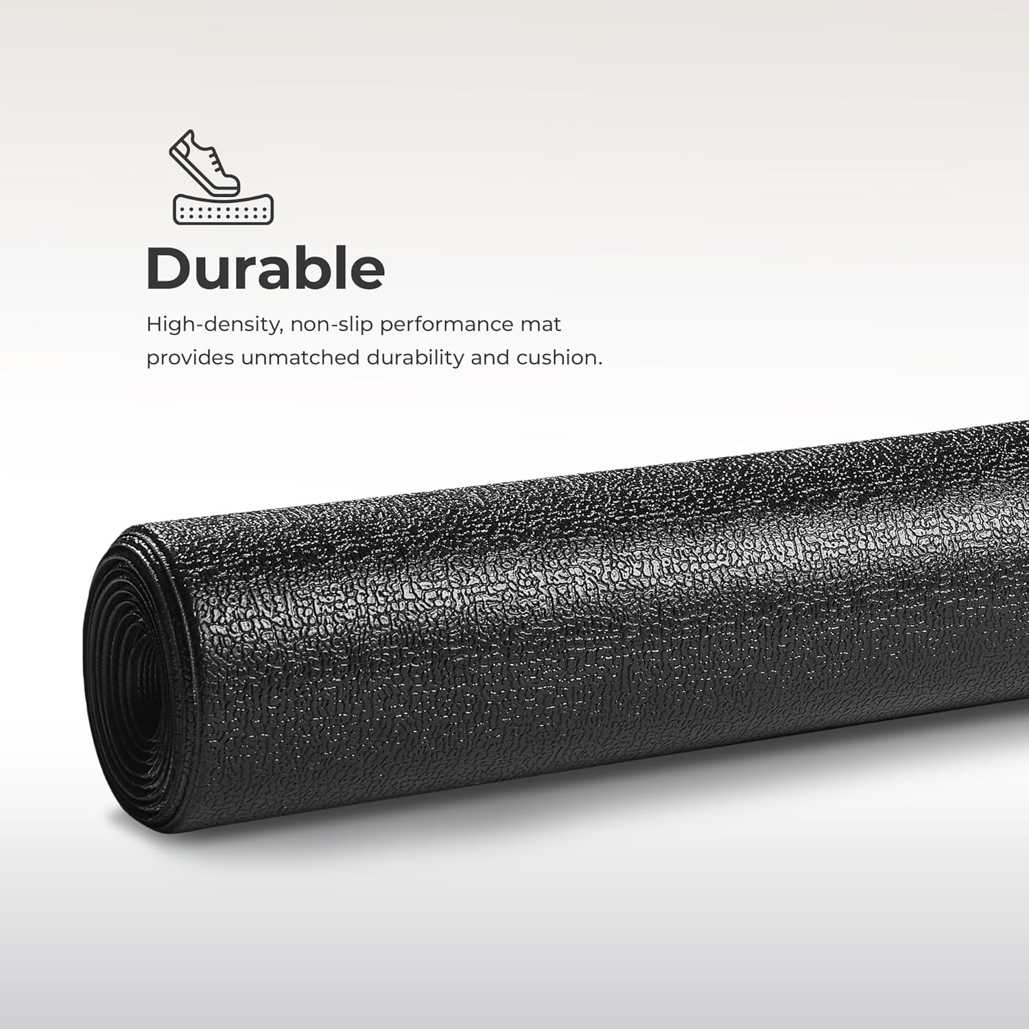【VERSATILE USAGE】 Crafted with high-density EVA foam material, our stationary equipment mat offers exceptional comfort and durability. Ideal for yoga, Pilates, aerobics, and stretching.