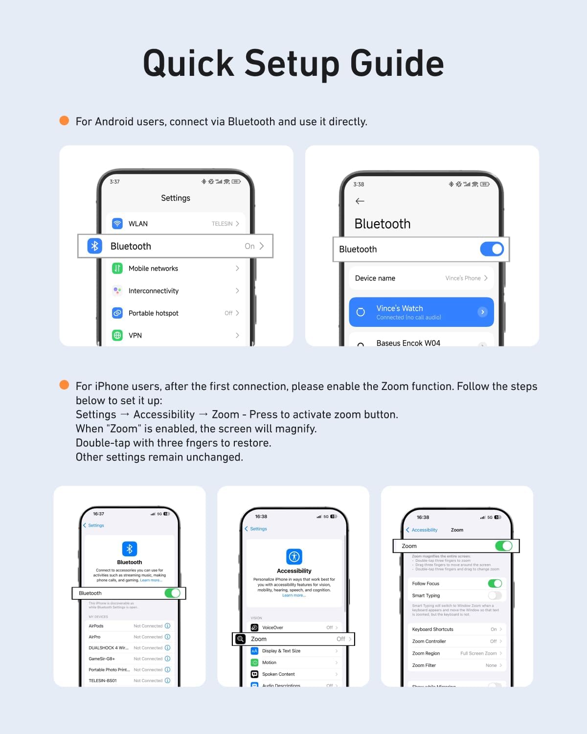 【Upgrate Rechargeable Detachable Wireless Remote Control】Smartphone camera grip equipped with a upgrate detachable 10m/32.8ft wireless remote control, compatible with iOS and Android systems, it integrates perfectly with your phone’s camera app via mobile Bluetooth connection. Easily connect to your smartphone without downloading apps
