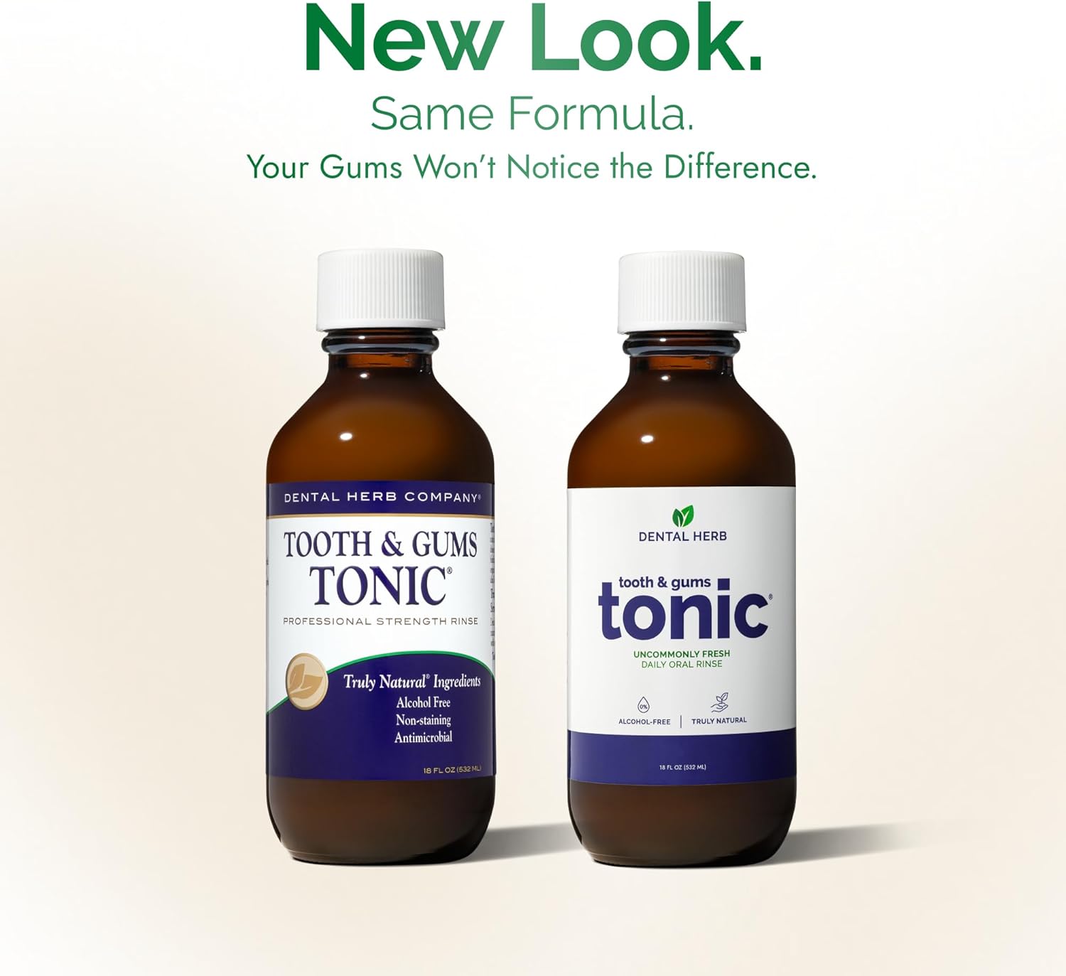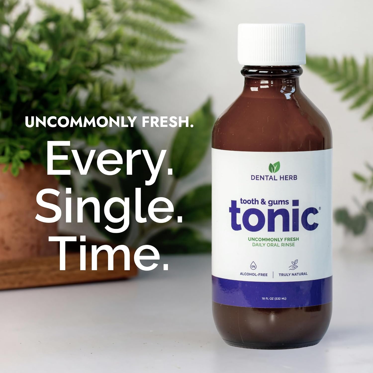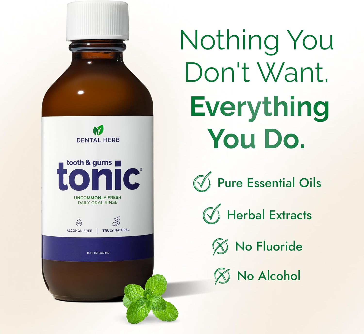 Tooth & Gums Tonic Herbal Oral Rinse with Essential Oils | Alcohol-Free, Fluoride-Free Mouthwash | Plant-Based Oral Care | Soothe Gums & Freshen Breath Naturally | by Dental Herb Company | (2) 18 oz.