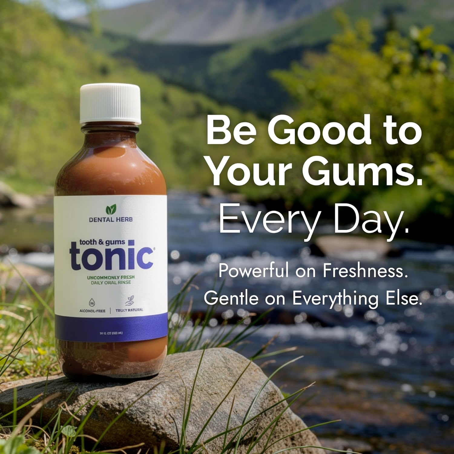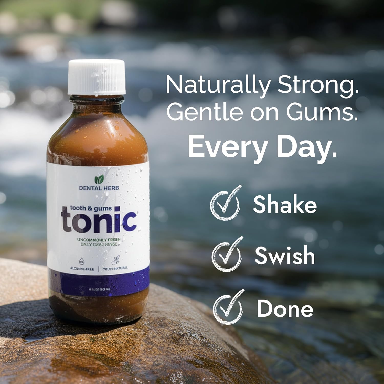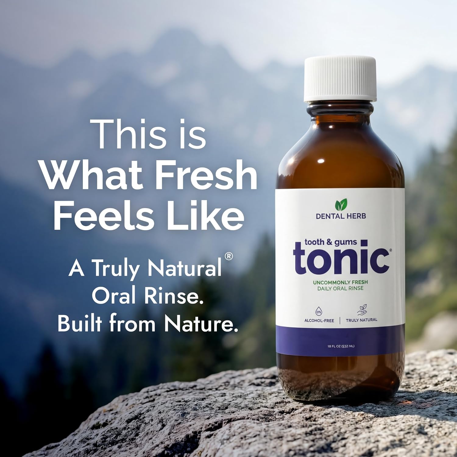 Tooth & Gums Tonic Herbal Oral Rinse with Essential Oils | Alcohol-Free, Fluoride-Free Mouthwash | Plant-Based Oral Care | Soothe Gums & Freshen Breath Naturally | by Dental Herb Company | (2) 18 oz.