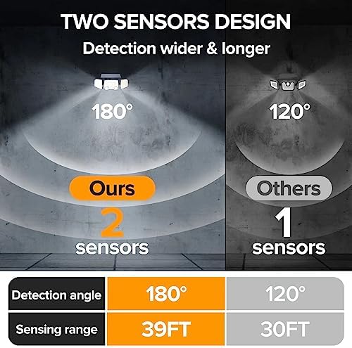 The design with two sensors enhances the sensing angle to 180° and the max detection distance to 39FT.