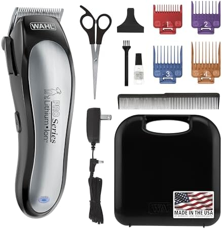 Wahl USA Lithium Ion Pro Series Cordless Animal Clippers – Rechargeable, Heavy-Duty, Electric Dog & Cat Grooming Kit for Small & Large Breeds with Thick to Heavy Coats – Model 9766