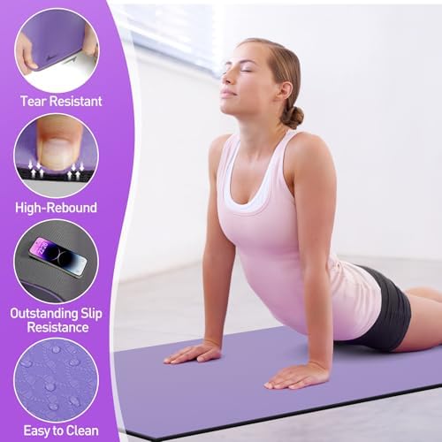 Yoga Mat Thick – Non Slip Yoga Mat with Strap, Anti-Tear Exercise & Fitness Mat for Yoga, Pilates & Floor Workouts, Carry Strap Included