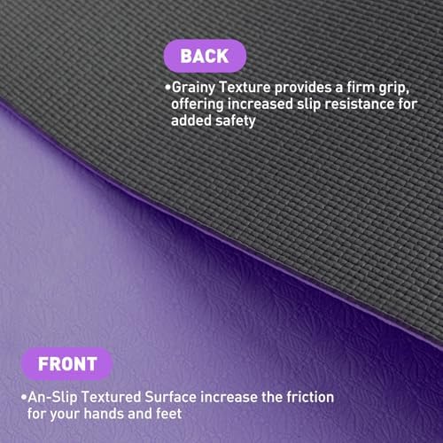 Double-Sided Non-Slip Yoga Mat: The innovative particle design on the bottom ensures exceptional grip and stability on a variety of surfaces. Anti-Slip textured surface on the top increase the friction for your hands and feet, providing steadfast support even during intense, sweaty sessions